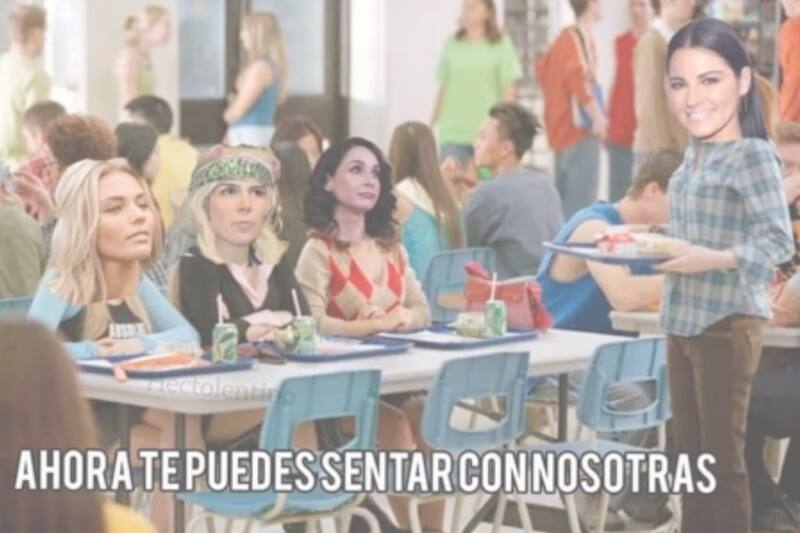 En el post que subió a su Instagram, la comediante de "Las lavanderas" hizo un montaje con las caras de Irina Baeva, Susana González y ella misma, en donde recrean una de las escenas de la película "Chicas pesadas", en la cual, Regina George decide invitar a Cady Heron (en este caso Maite Perroni) a su mesa porque ya es parte del club de "Las robamaridos".
