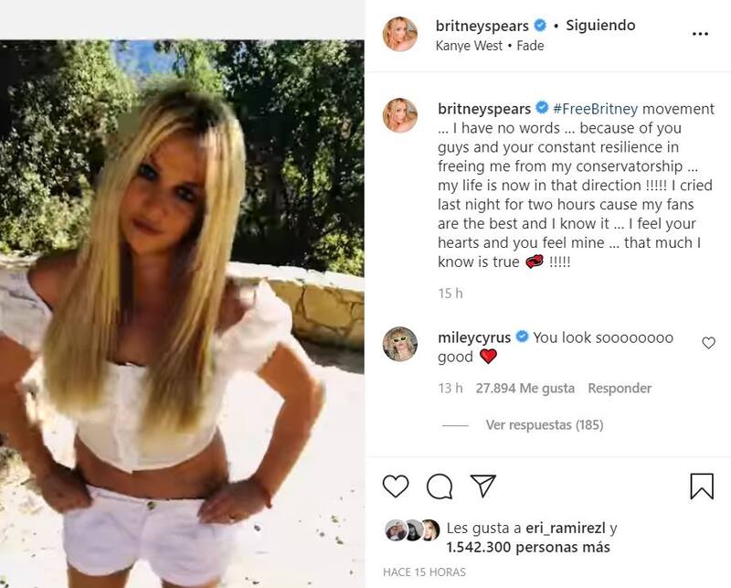 "Movimiento #FreeBritney… no tengo palabras… gracias a ustedes y a su constante resistencia para liberarme de mi tutela… ¡mi vida va ahora en esa dirección!