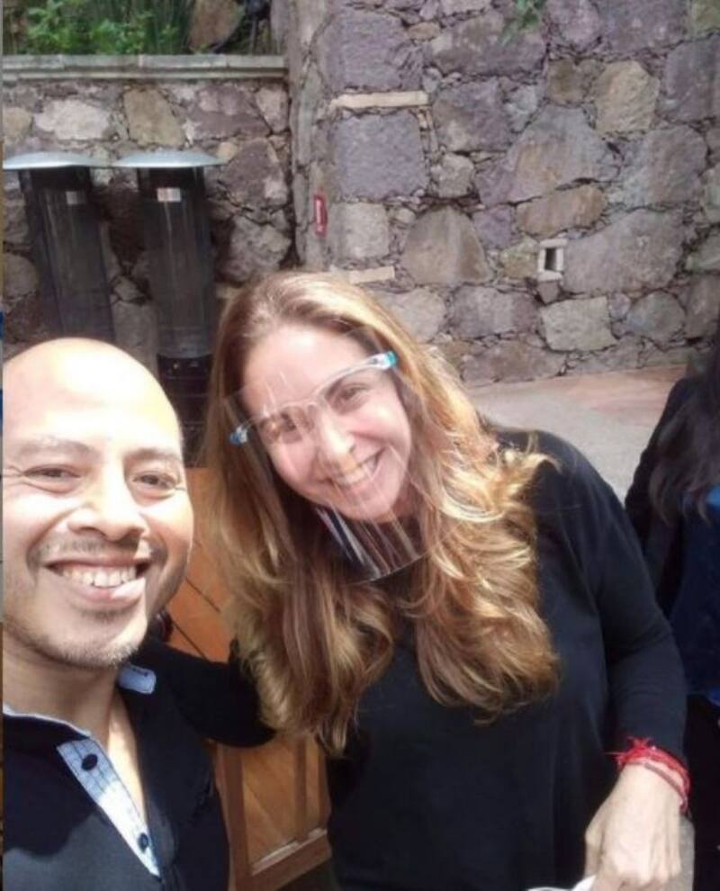 "La novia de América" se retrató con uno de sus fans mostrando un rostro libre de maquillaje, con su gran sonrisa característica, portando una careta y su espectacular melena dorada. Aunque en la fotografía se le alcanzan a distinguir algunas arrugas, la cantante demostró que aunque los años han pasado, se ha conversado de una manera admirable.