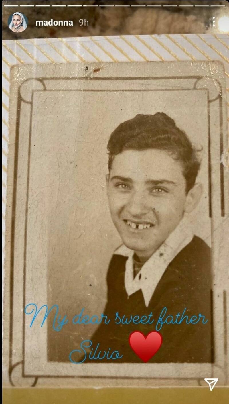 Madonna subió a sus historias de Instagram una foto de su padre, Silvio, cuando era adolescente. A través de un corto texto, contó cómo Ciccone es dueño de un viñedo y que sigue manteniéndose activo a pesar de su avanzada edad.