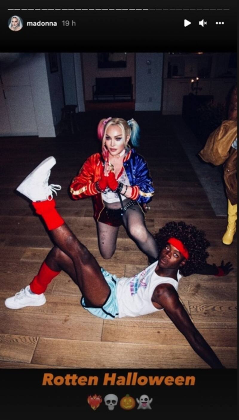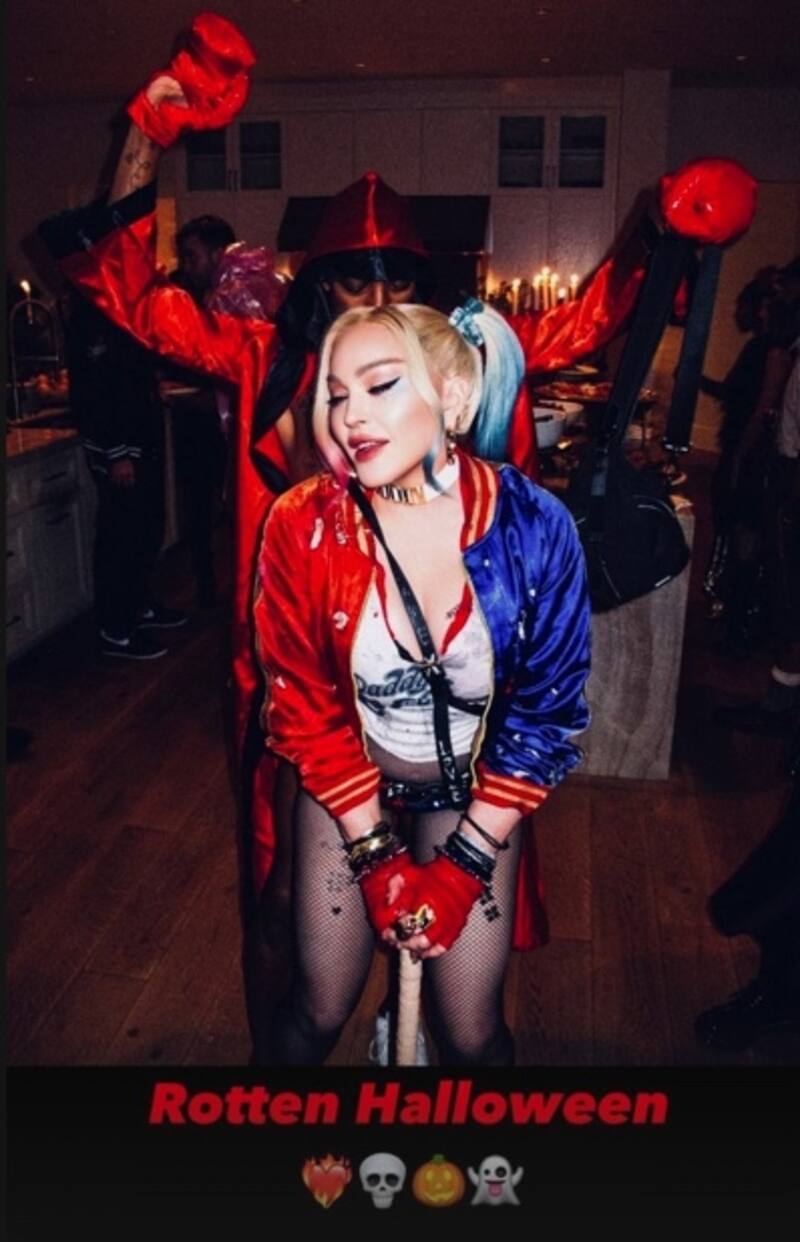 En su "Rotten Halloween" la cantante de 63 años optó por disfrazarse de Harley Quinn, asombrando a todos con el gran parecido. En dicho festejo estuvieron presentes los 6 hijos de Madonna, Lola Leon, Rocco Ritchie, David Banda, Stelle Ciccone, Este Ciccone y Mercy James.