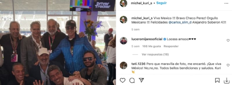 Y es que en una fotografía que el empresario compartió junto a algunos amigos y colegas durante la Fórmula 1 en México, Lucerito escribió en los comentarios, un sincero: "Los amo", que demostró tener cariño por el novio de su mamá.