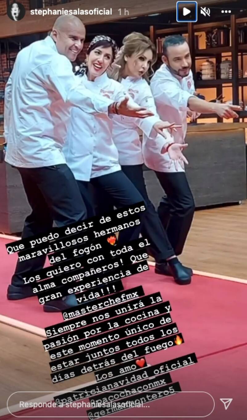Para acompañar una galería de fotografías con diversos momentos en MasterChef Celebrity, Stephanie Salas escribió en la descripción: "Me llevo fuego y pasión dentro de mi corazón, me llevo la dicha de llevar a cabo una de las cosas que más disfruto en la vida".