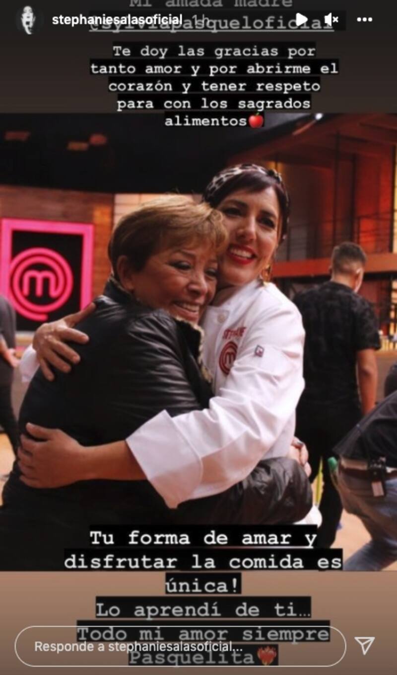Además, en sus Instagram Stories, Stephanie Salas agradeció a su mamá y a la producción por su paso en MasterChef Calabrity. A Sylvia Pasquel, le escribió: