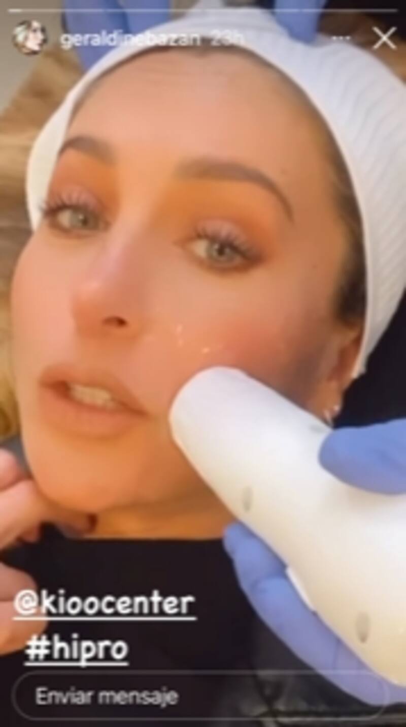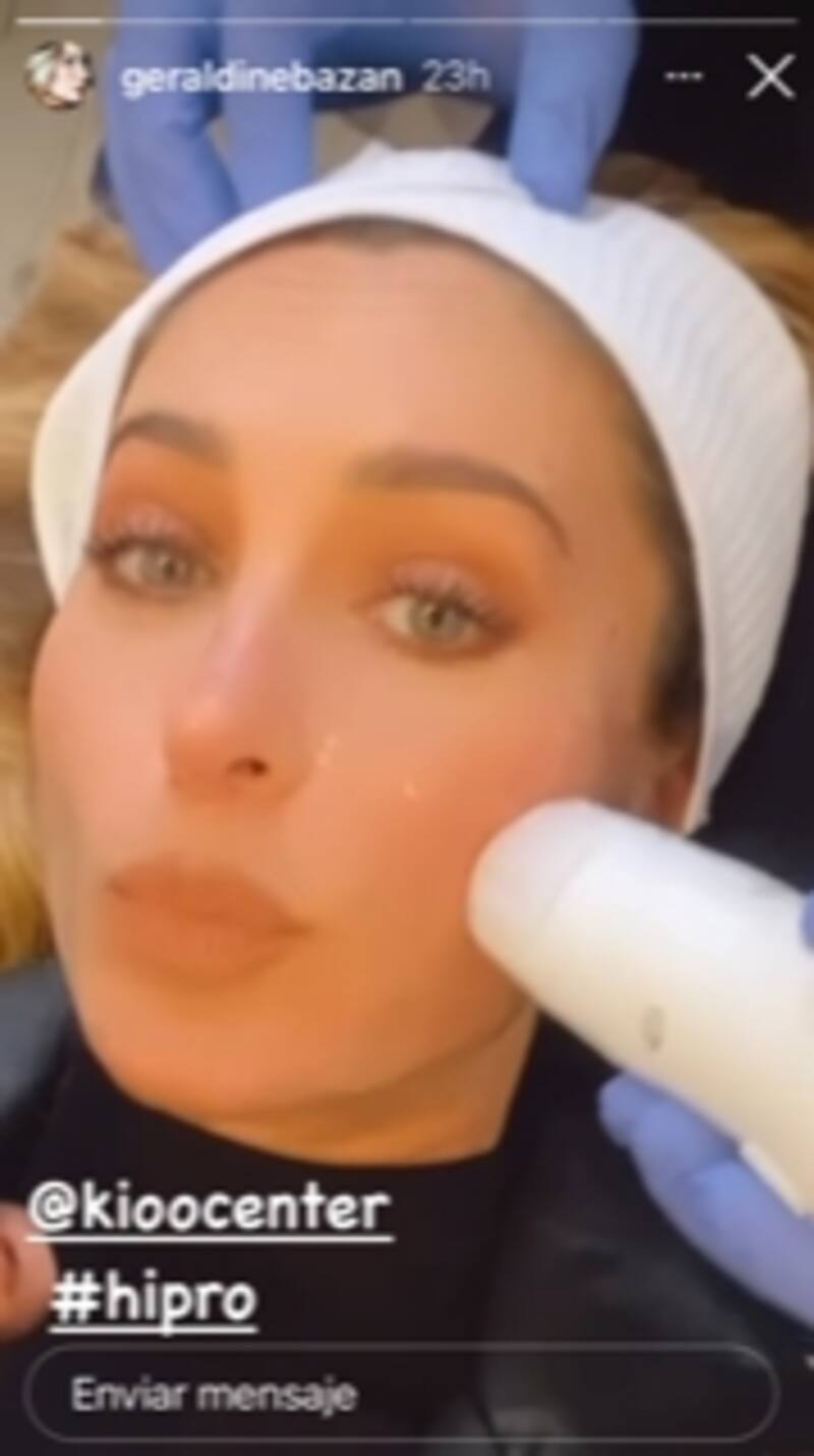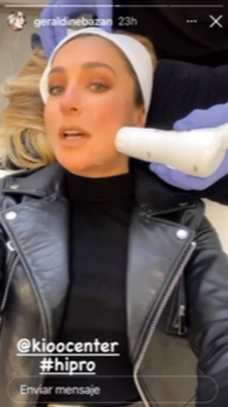 Mientras se sometía al tratamiento, Geraldine Bazán mencionó: "Ahí les va, estoy en 'Kioo' (clínica estética) y me están haciendo en 'Hipro' que es un ultrasonido de alta intensidad focalizado que nos ayuda a la piel a tensar, a crear nuevas fibras".