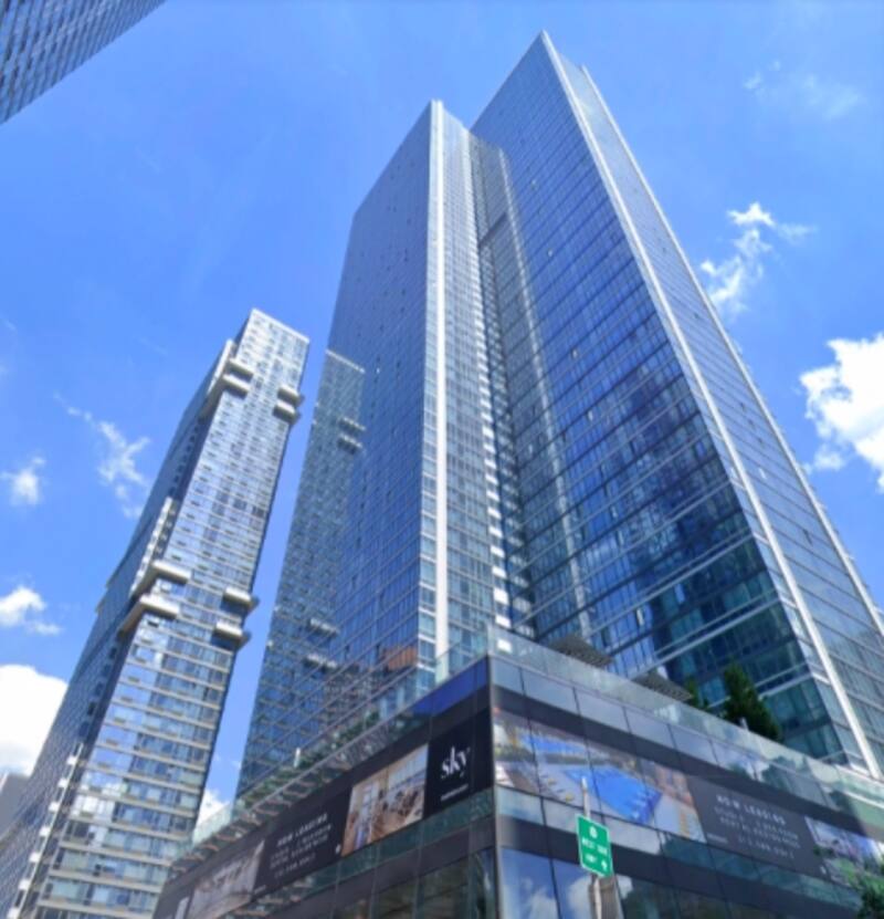 Ubicado en el piso 56, en el vecindario Hell's Kitchen, el apartamento de dos dormitorios y dos baños en esquina ofrece amplias vistas de la ciudad. Las características interiores incluyen ventanas de piso a techo, pisos de roble y paletas de colores naturales, según se indica en el listado anterior.