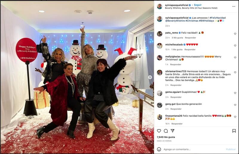 A pesar de que Michelle Salas fue muy cuidadosa al no publicar su ubicación en sus post navideños, por desgracia su abuelita y mamá no tuvieron el mismo cuidado para poder evitar posibles críticas. Sylvia Pasquel compartió una postal donde vemos posar a las mujeres Pinal en las decoraciones del Hotel Beverly Wilshire ubicado en Beverly Hills y parte de la exclusiva cadena hotelera de los Four Seasons Hotel.
