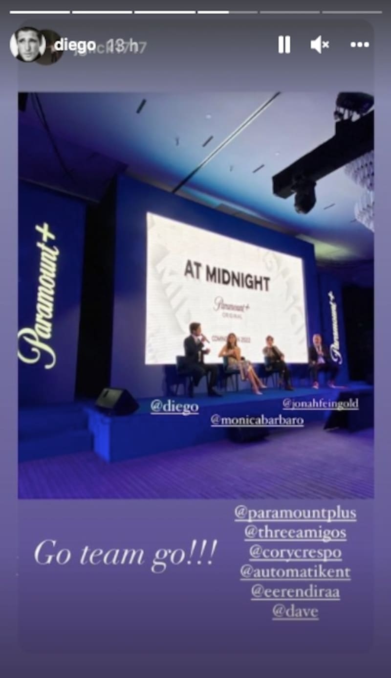 Diego Boneta acaba de presentar "At Midnight", largometraje auspiciado por Paramount+ cuya filmación iniciará en los próximos días en Ciudad de México y Riviera Maya bajo la dirección de Jonah Feingold, un cineasta que hizo "Dating & New York", comedia romántica de bajo presupuesto que se volvió un hit en Estados Unidos.