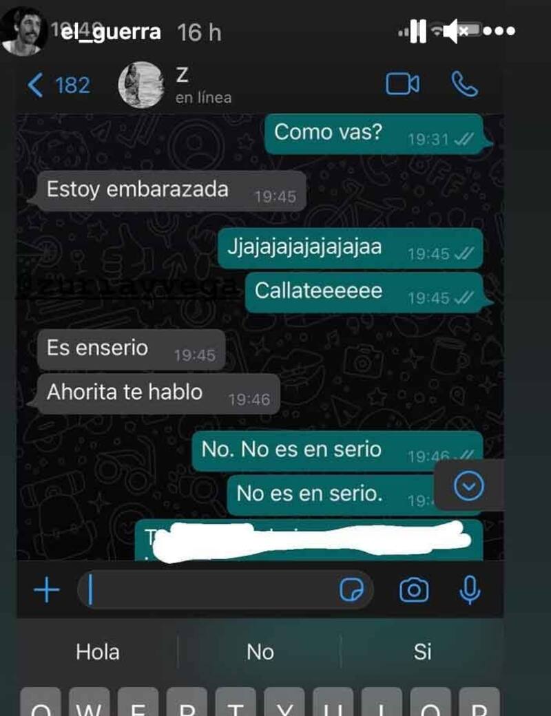 A través de Instagram Stories, reveló una conversación con su esposa Zuria Vega donde en medio de una plática de lo más casual le escribió: