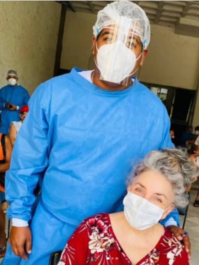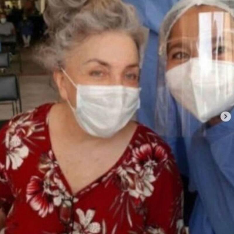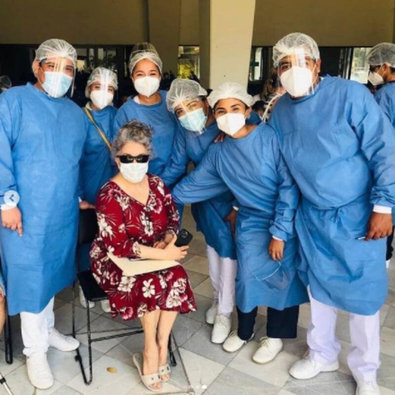 La actriz de 68 años asistió al centro de aplicación respetando las medidas sanitarias para evitar exponerse y fue atendida por el personal médico, que aprovechó el momento para tomarse varias fotografías con la conductora de "Noche a Noche".