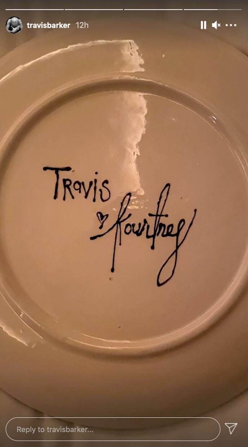 El jueves, el músico de Blink 182 publicó una foto en sus historias de Instagram de lo que parece ser un plato de cerámica con sus nombres. En la imagen, sus nombres están conectados por un pequeño corazón en el medio. La dulce publicación llega dos meses después de que una fuente confirmara la relación con la revista People.