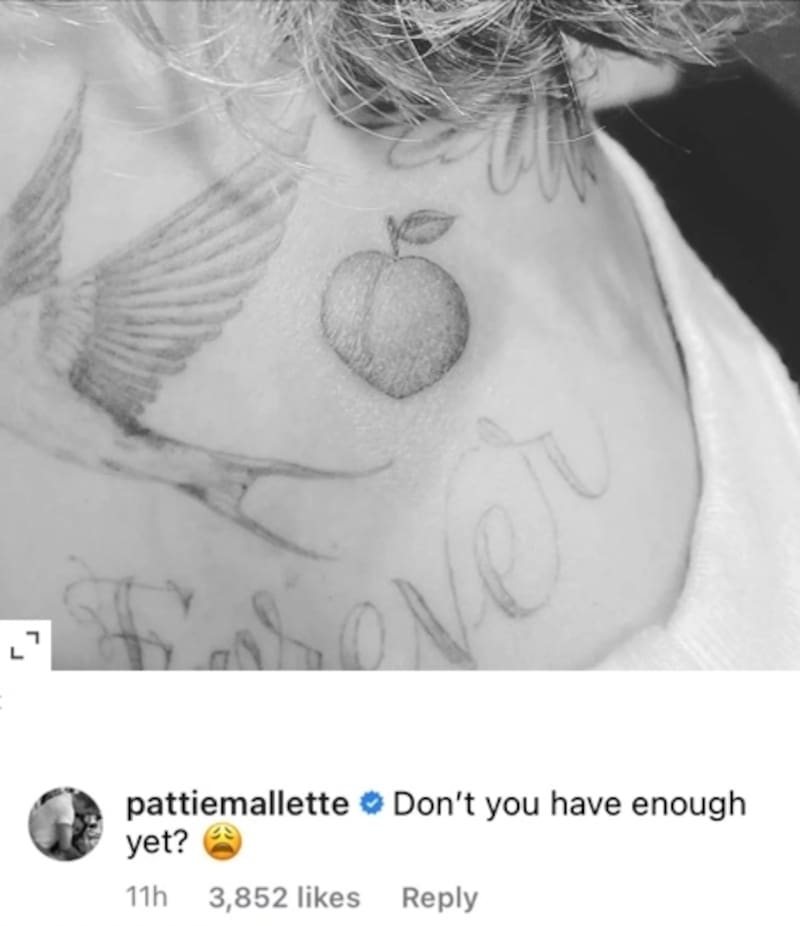 Aunque muchos de sus amigos se apresuraron a felicitarlo por la última incorporación a su extensa colección de tatuajes, su mamá Pattie Mallette, sugirió en broma que tal vez su hijo había llegado a su límite."¿No tienes suficiente todavía?" comentó junto a un emoji de cara cansada.