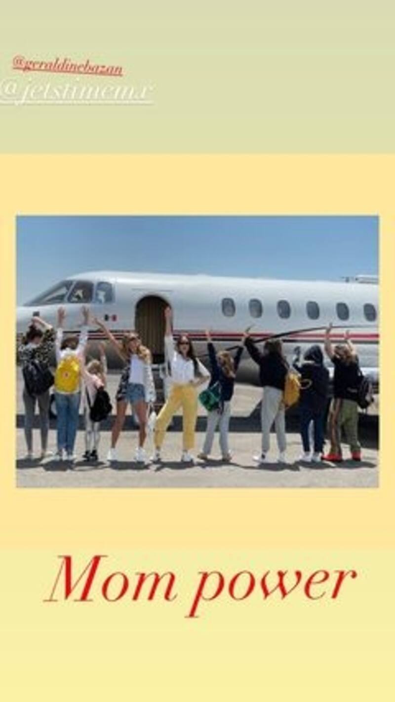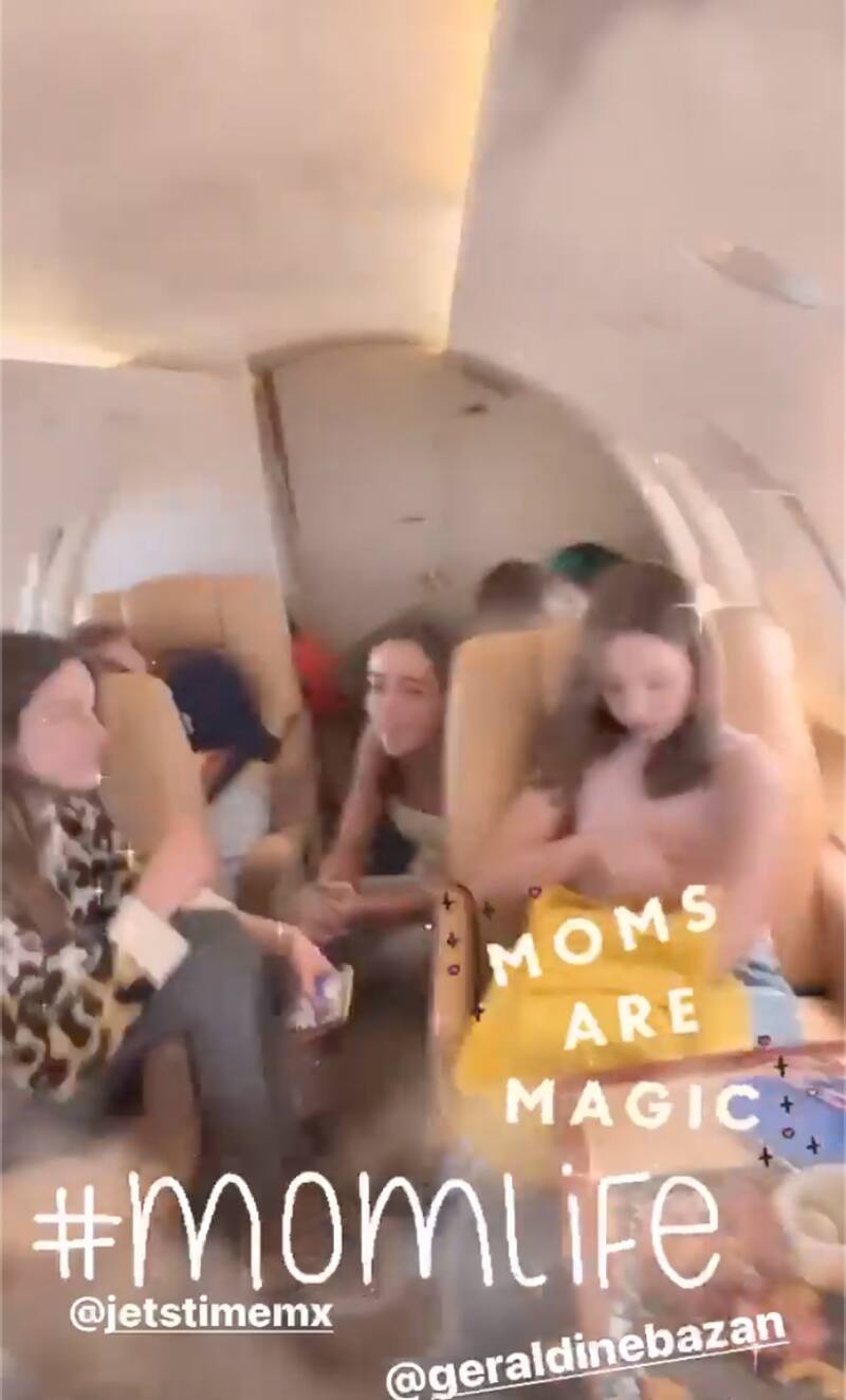 En las publicaciones en cuestión, Camila Sodi mencionó en unas de las primeras Instagram Stories: "Somos unas mamás trabajadoras", posterior, capturó con la cámara a Geraldine Bazán, para después decir: "Aquí están todos los cachorros" apuntando con la cámara a los hijos de ambas actrices en el avión.