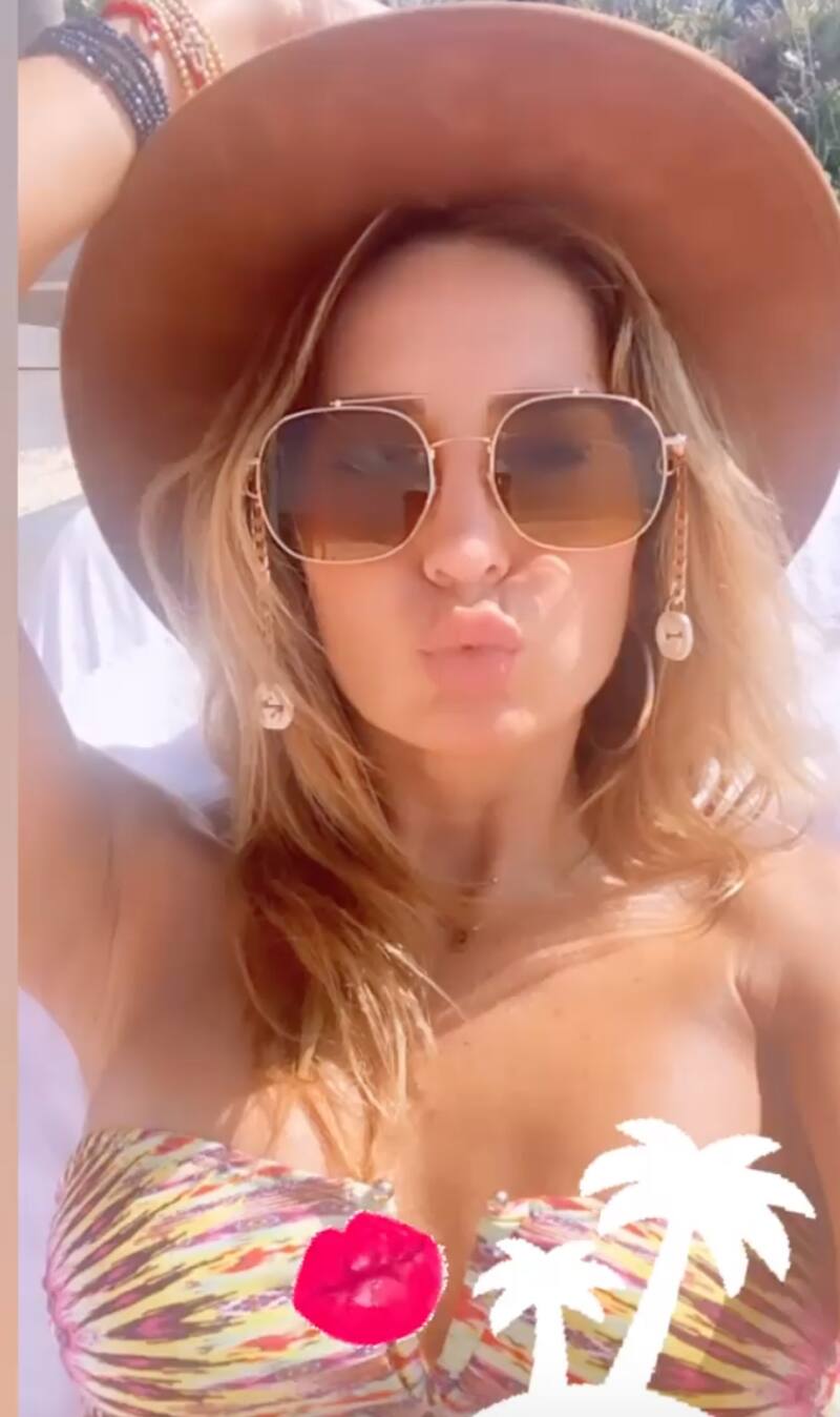 En una de sus primeras Instagram Stories, Geraldine Bazán apareció en un bikini con top strapless muy al estilo tropical con gafas grandes y sombrero incluido, solo un vistazo de lo guapa que se ve en la playa.