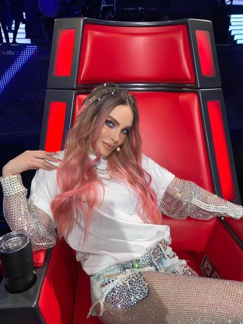 En la pasada emisión de "La Voz Kids" donde Belinda funge como coach, la cantante deslumbró con un look entre lo kawai y lo metalero con estampado con referencia a la banda "Iron Maiden" que se llevó todos los reflectores.