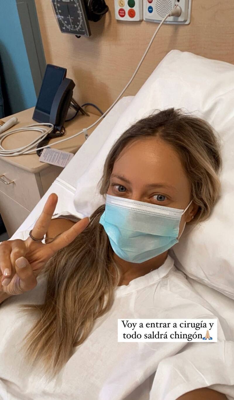 "Voy a entrar a cirugía y todo saldrá chi#%&", escribió Vanessa Huppenkothen al pie de la fotografía en la que se le ve recostada en una cama de hospital, usando cubrebocas y haciendo la señal de amor y paz.