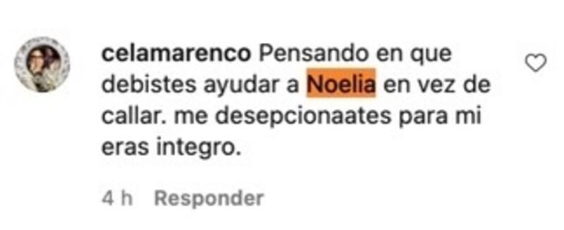 En los comentarios destacan: "pensando en que debiste ayudar a Noelia en vez de callar, me decepcionaste para mi eras integro" así como otro internauta dijo que estas acusaciones son la razón por la que el padre de Evaluna no puede conciliar el sueño: " como iba a dormir si lo andan involucrando en chismes que no dijo nada cuando vio cosas que le hacían a Noelia".