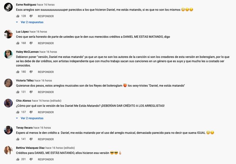 El tema causó gran sensación, alcanzando hasta el momento las más de 23 mil visualizaciones, pero también un revuelto, debido a que los usuarios acusaron esta versión de la hija de Erik Rubín como un plagio a la de la banda mexicana "Daniel, me estás matando".