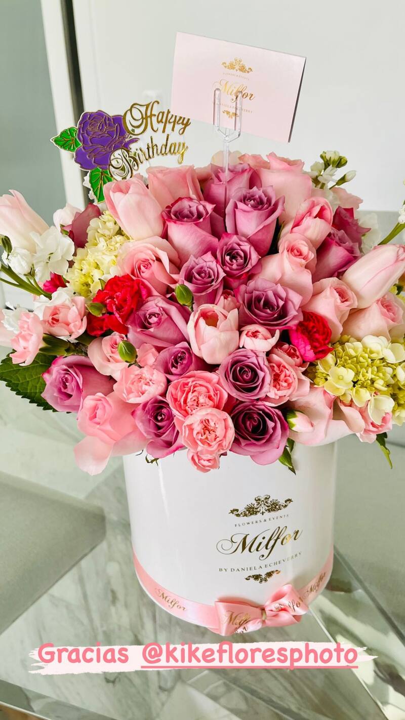 Además de mostrar su festejo, la conductora, compartió su look de cumpleaños, un vestido blanco que acentuaba su figura a la perfección; así como dejó ver a sus seguidores los regalos que recibió, entre los que destacaban múltiples arreglos florales.