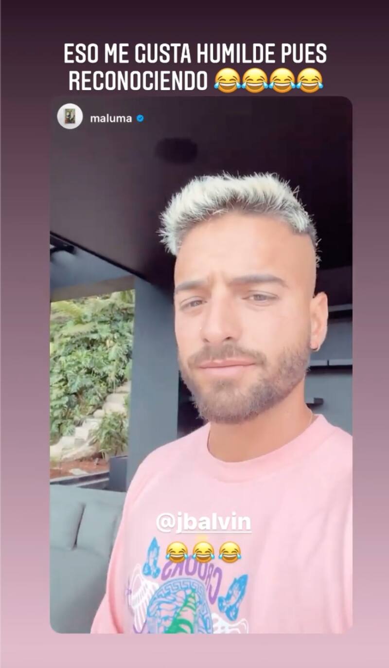 En una historia de Instagram, J Balvin comentó: "Acá siempre he dicho que yo soy mucho más bonito que Maluma... No hay comparación", mientras miraba a la cámara y mostraba su nuevo tinte en el pelo color rubio, en la que etiquetó a su compatriota.