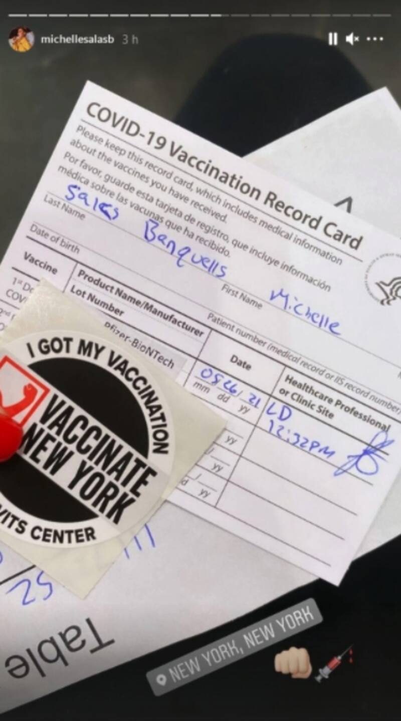 Posteriormente, la joven publicó en sus Instagram Stories su tarjeta de vacunación con su firma en el apartado de la primera dosis, así como un sticker que comprobaba que ya estaba vacunada.