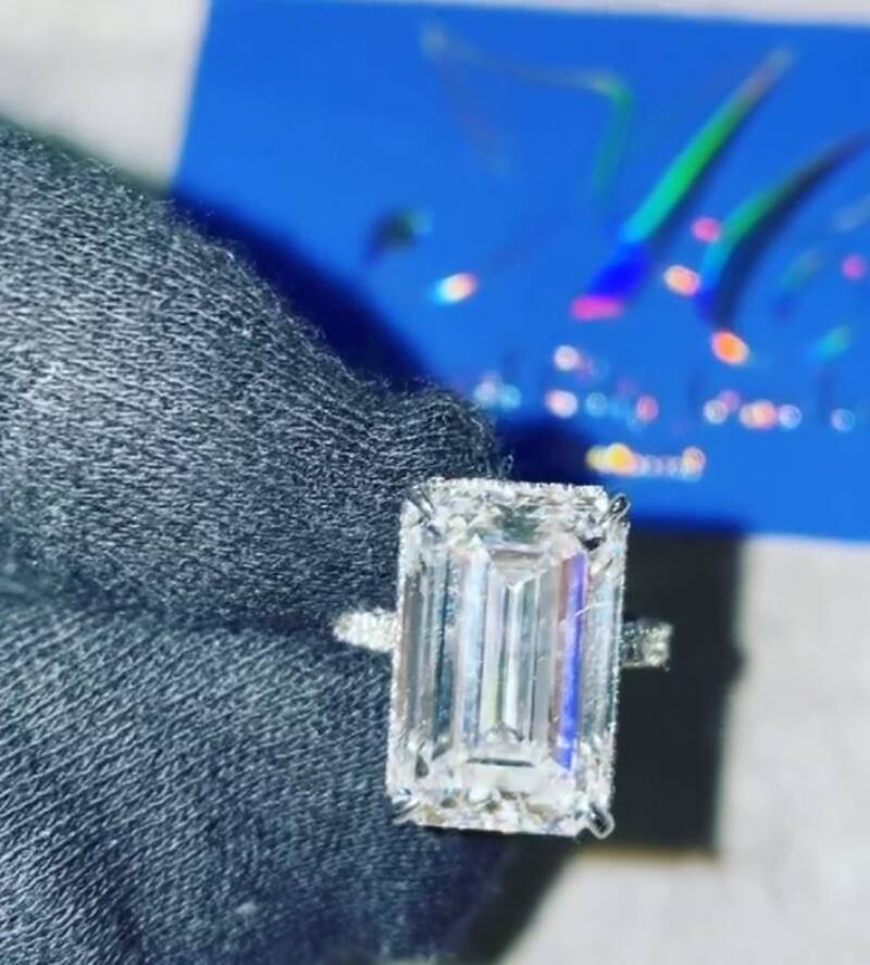 La lujosa pieza que mandó a hacer Christian Nodal para Belinda en la joyería norteamericana Angel City Jewerles, es un anillo diamante de talla esmeralda de 12 ct, valuado en más de 3 millones de dólares, es decir un equivalente entre 59 millones 701 mil 140 pesos mexicanos.