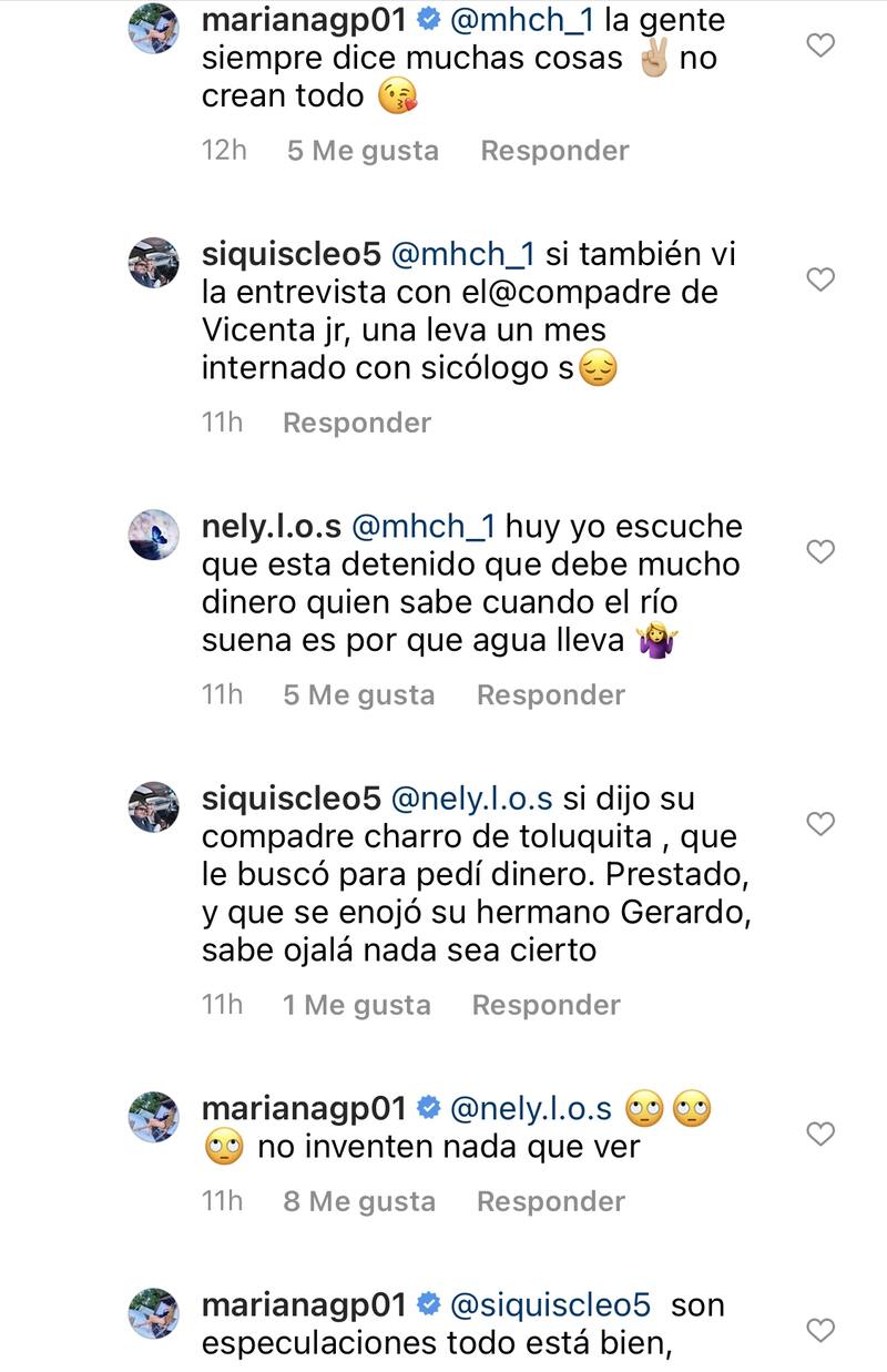 En dicha publicación la modelo fue cuestionada acerca de los rumores en torno a su paraje Vicente Fernández Jr, donde ella respondió las preguntas de varios de sus seguidores.