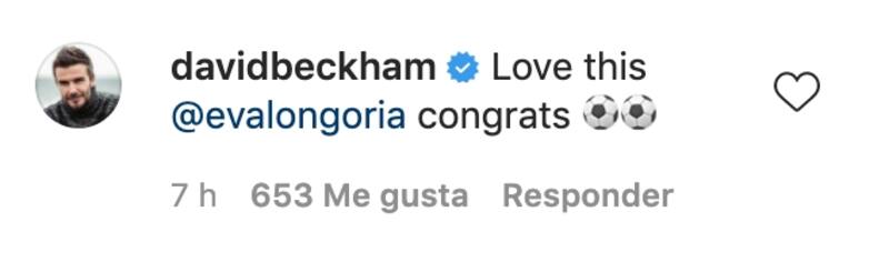 Con ello, la actriz confirmó que es parte de los empresarios con acciones en el equipo Necaxa, como el futbolista alemán Mesut Özil, campeón del mundo en Brasil 2014. Uno de los primeros en felicitar a Eva por su "incursión" en el deportes de las patadas fue el ex futbolista inglés David Beckham, esposo de su mejor amiga, Victoria Beckham, quien actualmente es propietario del Inter de Miami de la MLS.
