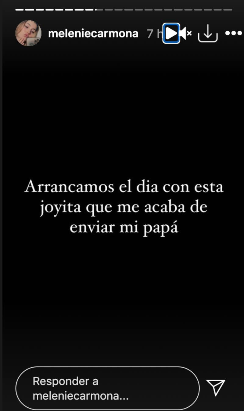 Recientemente, Melenie Carmona compartió a través de sus Instagram Stories, algunos videos de su papá escuchando un éxito de su mamá "Te quedó grande la yegua", que la joven encontró como una buena motivación para comenzar su día.