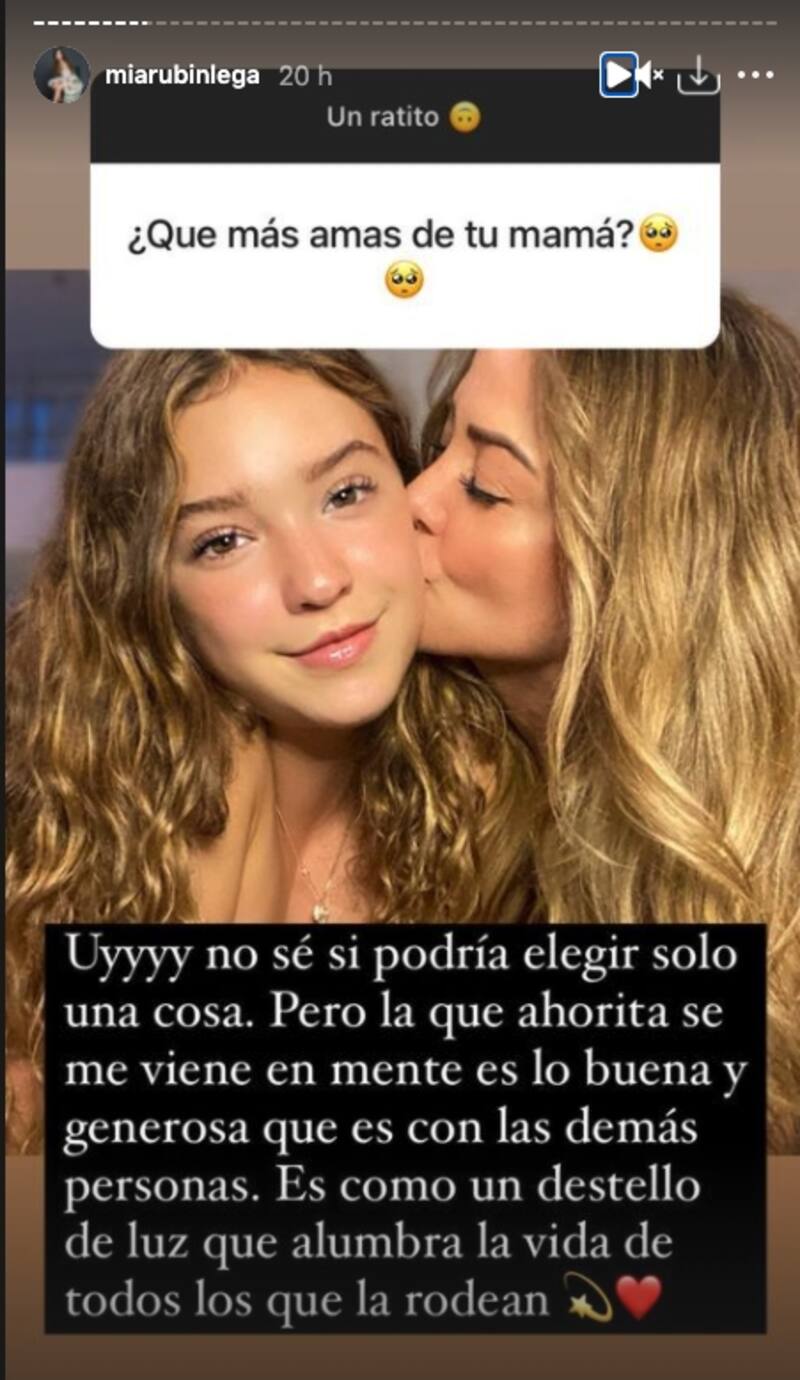 En una dinámica de preguntas en su cuenta de Instagram, Mía Rubín respondió algunas dudas de sus seguidores, entre ellas estuvieron los cuestionamientos sobre qué es lo que más ama de su mamá, a lo que comentó: "Es como un destello de luz que alumbra la vida de todos lo que la rodean".