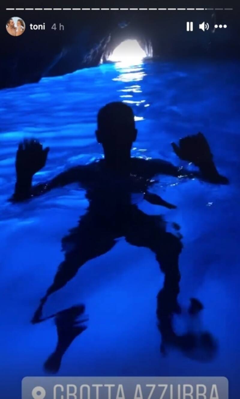 En las vacaciones podemos ver a la pequeña Alaïa luciendo un traje de baño amarillo mientras disfruta del sol y la agradable brisa marina, así como el bailarín compartió un impactante video de la fabulosa Gruta Azul, una cueva marina de gran renombre en Italia.