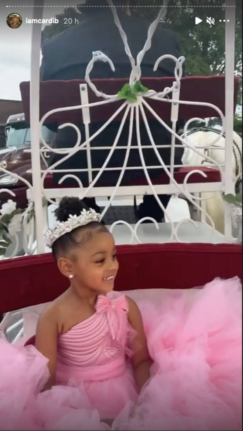 Cardi B y Offset celebraron a lo grande el cumpleaños número 3 de su pequeña Kulture, haciéndola sentir como la princesa de un cuento de hadas: llegó en un carruaje con un elegante vestido rosa.