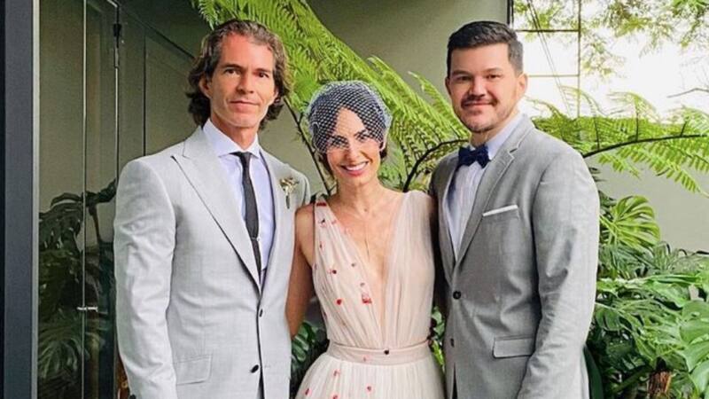 Ana Serradilla lució un sencillo look de tirantes completamente en tono blanco, pero co detalles rojos para hacerlo más original. Raúl Martínez optó por un traje gris claro, corbata y zapatos en color negro. En sus historias de Instagram la actriz también compartió una foto con su esposo, donde dejó ver un poco más su hermoso vestido de novia.