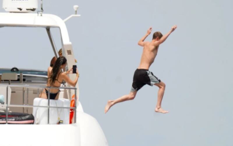 La modelo, que apareció en los titulares con su apariencia de alfombra roja en el Festival de Cine de Cannes este fin de semana, también fue vista haciendo jet-ski a lo largo de las olas y tomando el sol en la cubierta de la embarcación.