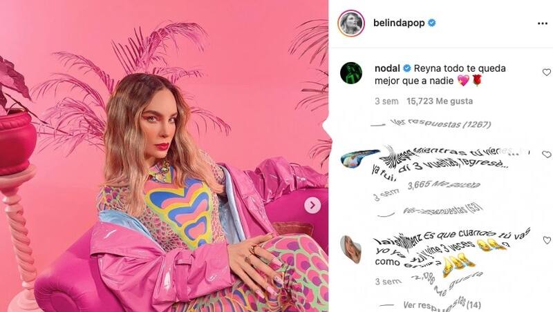 "Reyna todo te queda mejor que a nadie", escribió el prometido de Belinda, Christian Nodal, en la publicación.