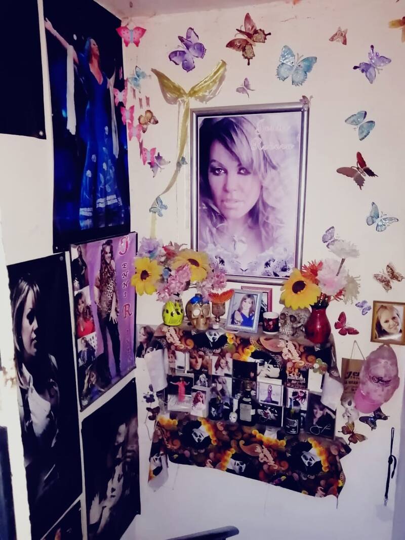 "Una vez escuché el tema de 'La gran señora' y de ahí comenzó esta fascinación por ella, lo que me llevó a coleccionar cosas de ella y después montar un gran altar", dijo la joven, quien este 2 de julio con motivo del cumpleaños número 52 de Jenni ha puesto flores y algunas veladoras para honrar a su artista.