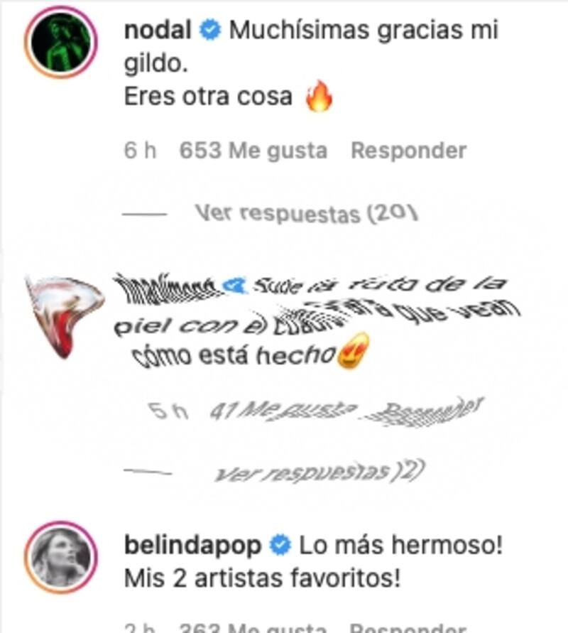 “Después de varios meses de inspiración y de creación, me complazco en presentarles una obra que fue inspirada en el amor de dos seres que quiero, respeto y admiro mucho, Belinda Peregrin y Christian Nodal. Esta obra, la cual llevó semanas de creación, fue pintada a mano al acrílico y pastel de cera en un lienzo en piel de casi 2 metros, y enmarcada en una caja veneciana en madera recubierta en hoja de oro. Espero la disfruten tanto como yo al hacerla”, escribió Medina.