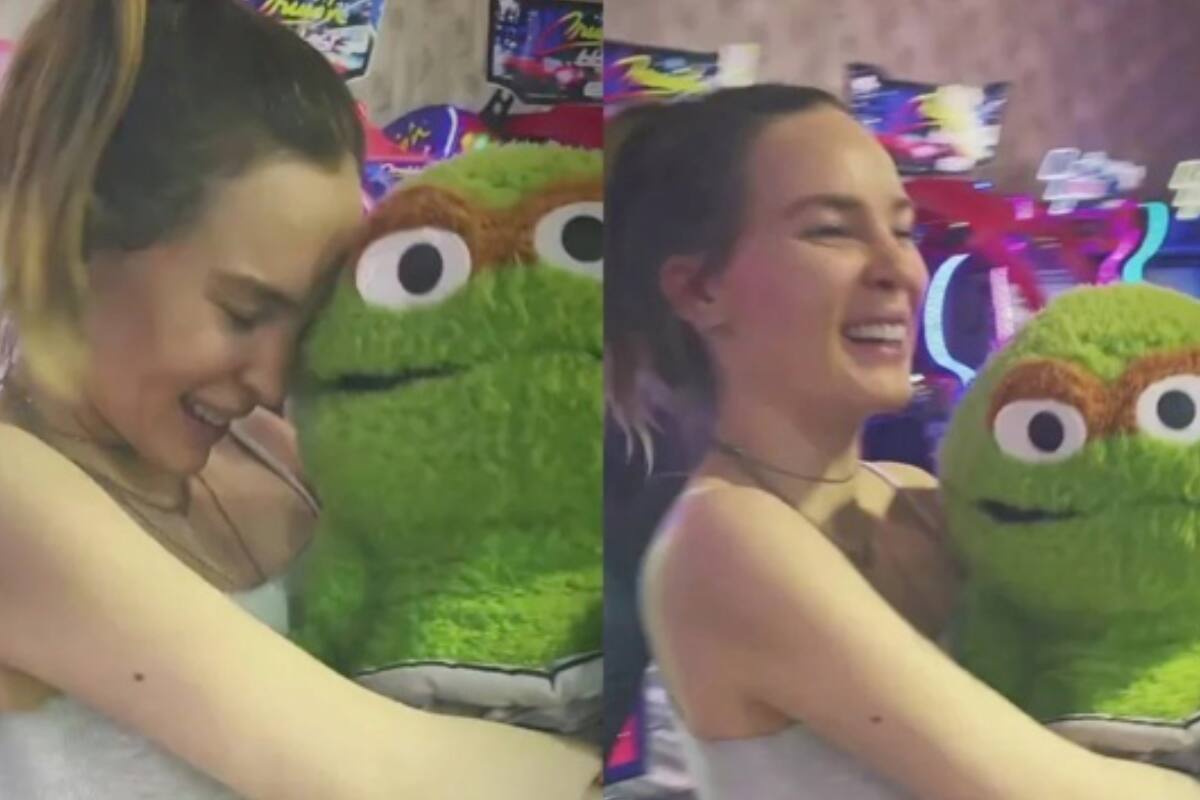 "¿Te gusta, mi amor?", se oye en el video. Ante esto, la intérprete de "Sapito", con un look casual que incluía una sudadera de gran tamaño, leggins negros y cubriendo su rostro con un cubrebocas rosa, comenzó a brincar emocionada y a gritar: "¡Me encanta, me encanta!"