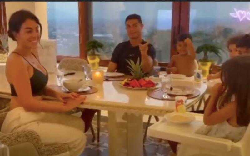 En esta red social, Cristiano Ronaldo, publicó un video en el que aparece con toda su familia, sus hijos Cristiano Ronaldo Jr, Alana Martina dos Santos Aveiro, Eva Maria dos Santos y Mateo Ronaldo junto con su esposa Georgina Rodríguez. Todos están preparados para disfrutar de una rica cena.