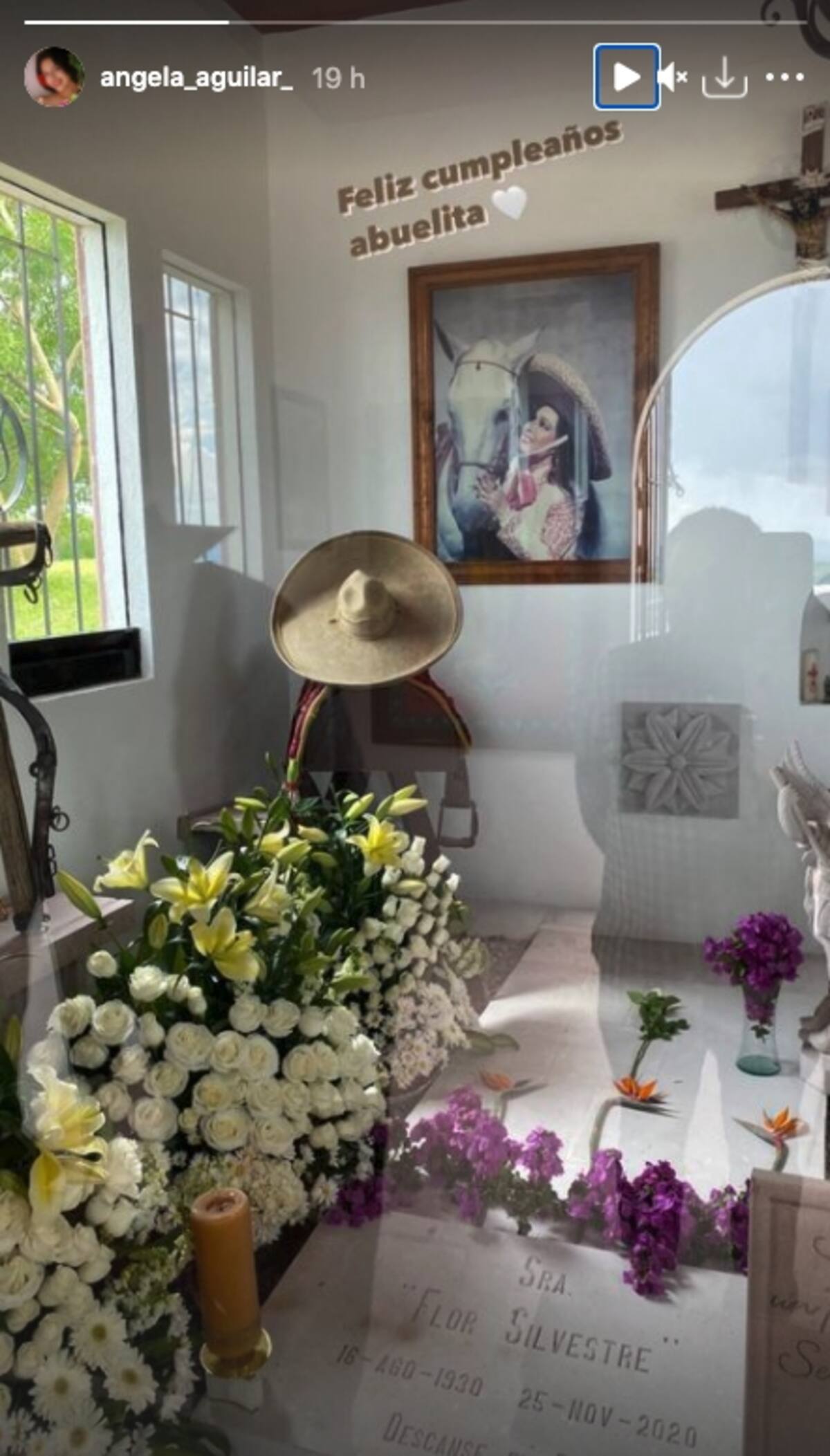 Los hijos de Pepe Aguilar, incluida Aneliz, también recordaron a su abuelita a través de sus Instagram Stories, y mostraron cómo llenaron de flores la tumba en la que descansa junto a su eterno enamora, Antonio Aguilar.