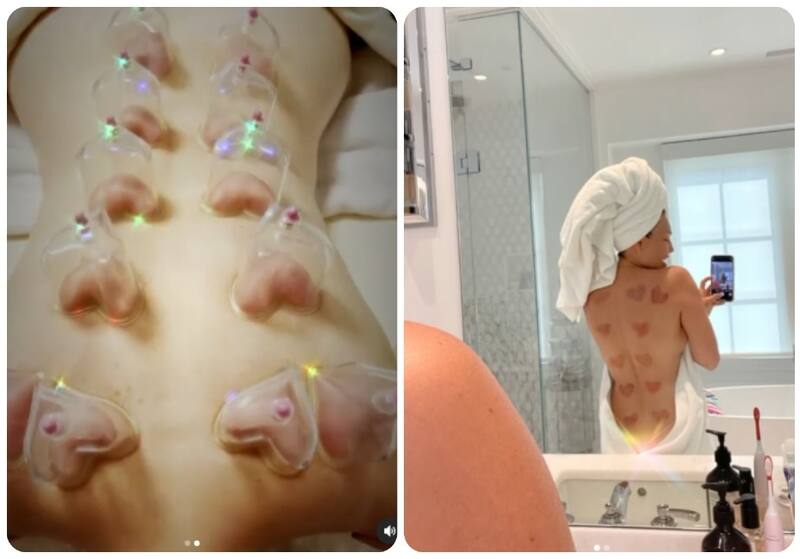 "¡Mi rutina de desintoxicación con cupping! Esta técnica de ventosaterapia me deja como nueva. Tiene muchísimos beneficios para el cuerpo, desde oxigenar los músculos, mejorar la circulación y eliminar las toxinas acumuladas. Sí, sé que se ve extrañísimo e inclusive doloroso, pero la verdad ¡se siente riquísimo!", escribió la actriz en su publicación.