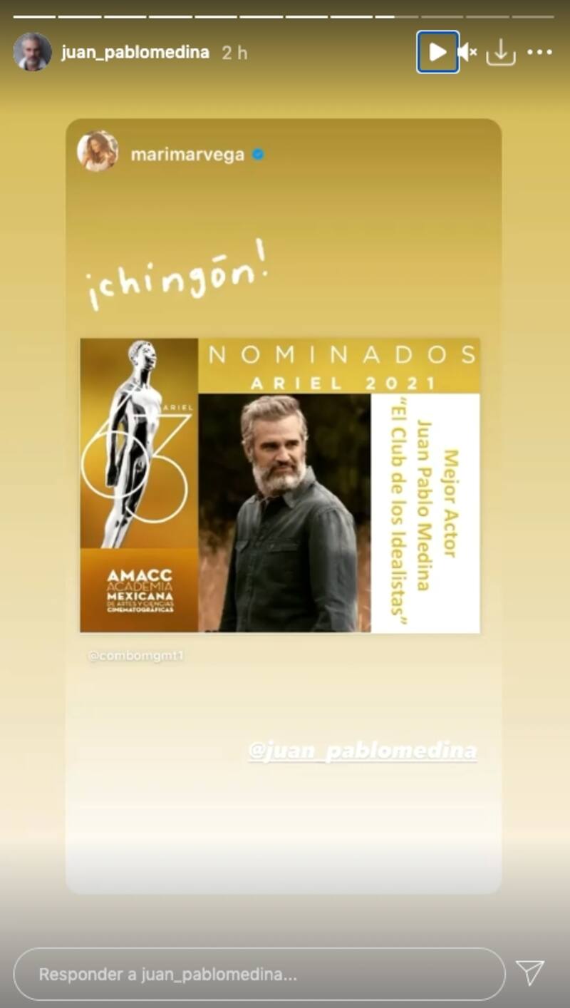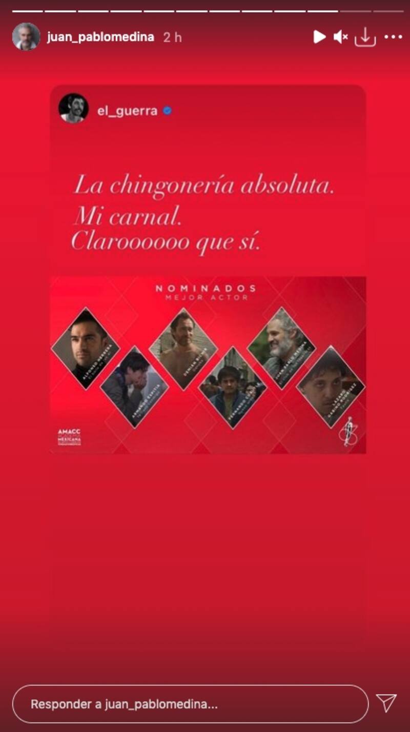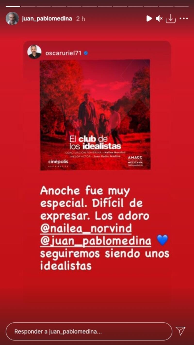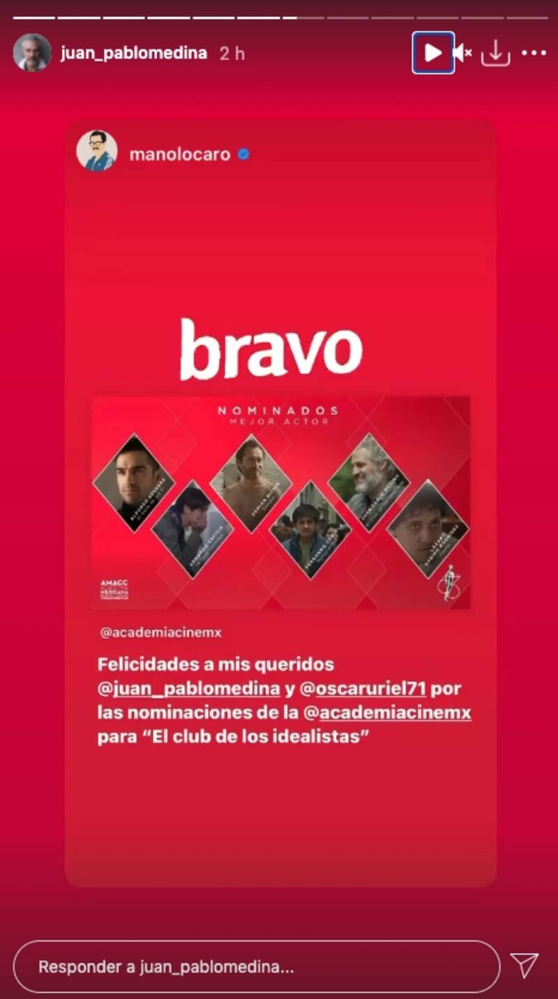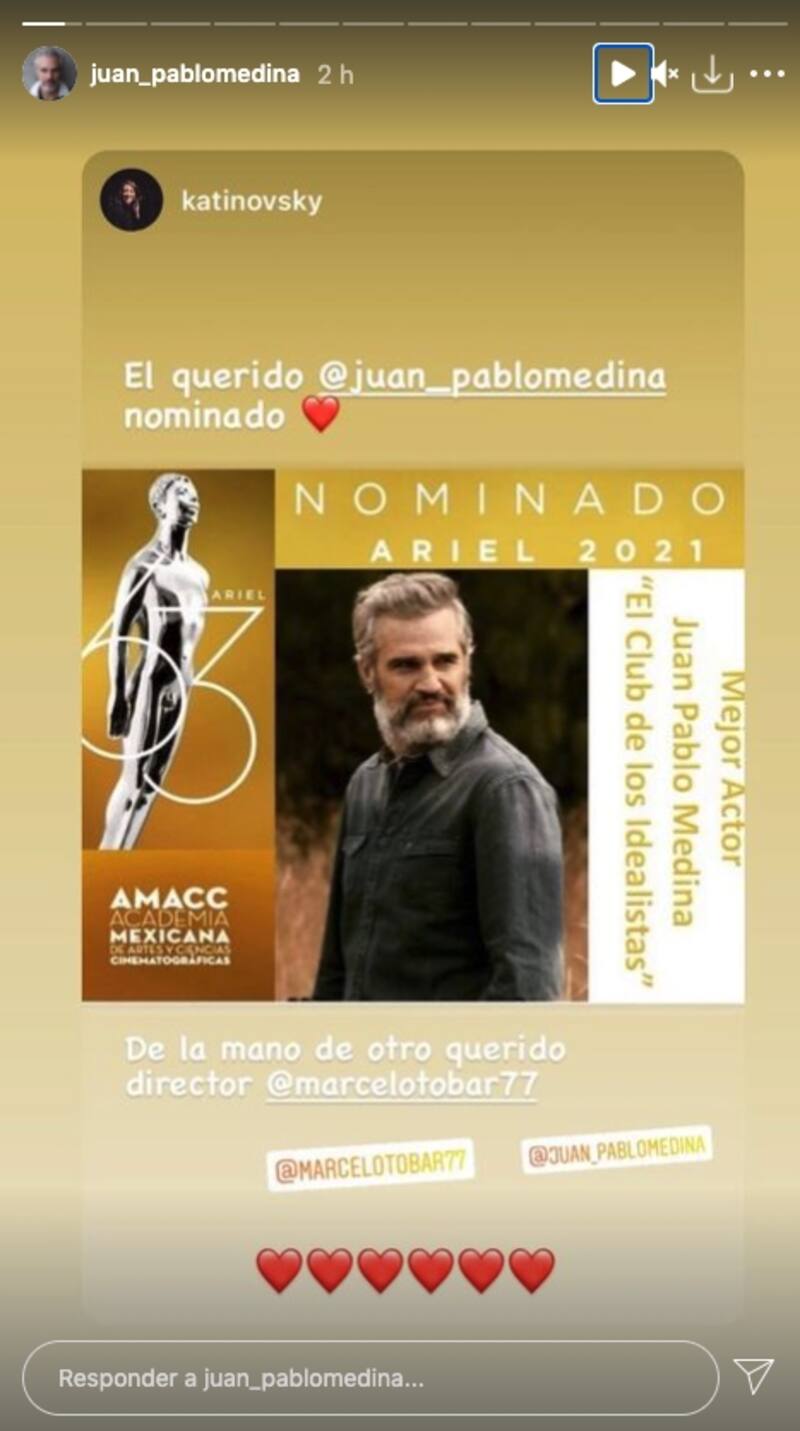 Al tanto, en algunas historias puso corazones para responder el gesto de todos aquellos que lo felicitaron por su logro, entre ellos, Oscar Curiel, Marimar Vega, Alberto Guerra y el director Manolo Caro.
