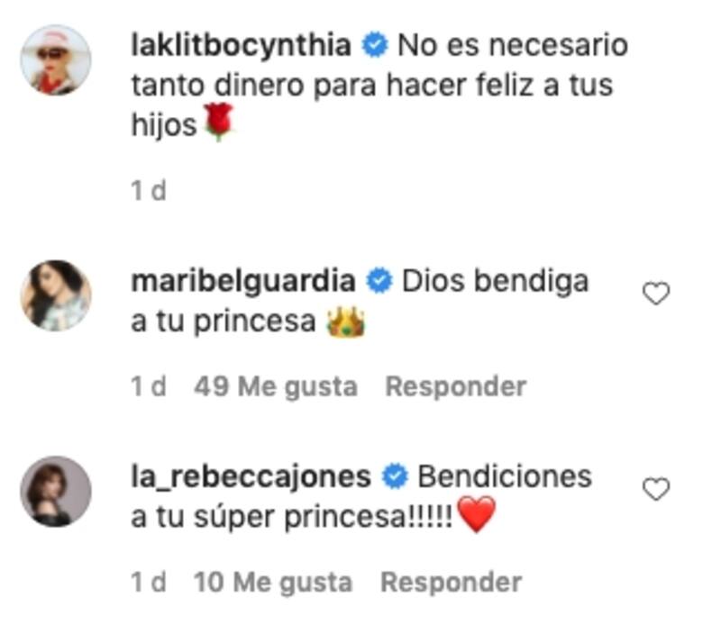 Se trató de una fiesta neón y en uno de los videos del festejo, Cynthia aparece bailando junto a la cumpleañera, y escribió: "No es necesario tanto dinero para hacer feliz a tus hijos", publicación que comentaron Maribel Guardia y Rebecca Jones.