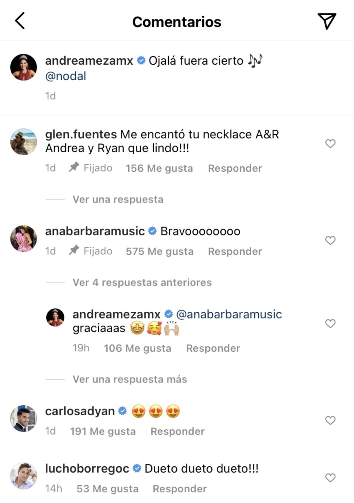 Uno de los comentarios más llamativos fue el de @luchoborregoc, quien en su perfil se presenta como comunicador social, experto en mercadeo y relaciones públicas, y quien pidió a la Miss Universo que realizara un dueto con Christian Nodal, a quien Andrea Meza arrobó en la publicación.
