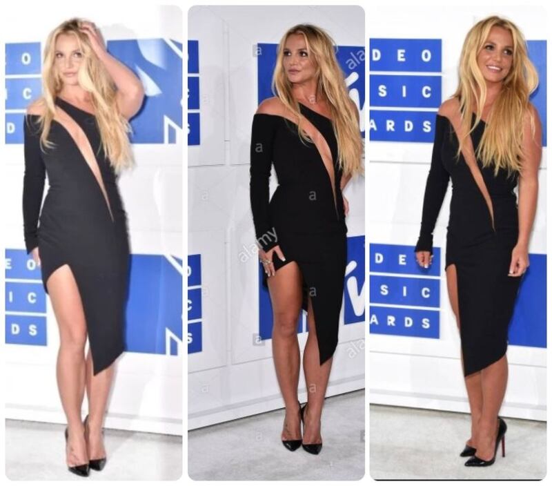 Después de miles de polémicas, drogas y rehabilitación, Britney volvió como el ave fénix tras 10 años de ausencia sobre el escenario de los premios Video Music Awards de MTV. La celebridad del pop volvió a lucir espectacular con un vestido negro asimétrico de un solo hombro y llamativo escote de Versace, que combinó con un peinado ondulado y relajado para obtener un look muy Britney.