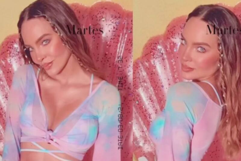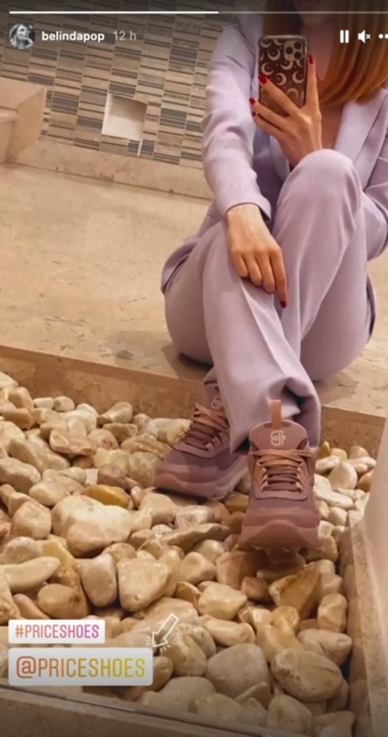 En el contenido subido por la actriz se le ve vestida con un pants morado mientras promociona los tenis de la marca "Price Shoes", pero sin duda lo que más sorprendió fue que Belinda no tenía joyas en sus dedos.