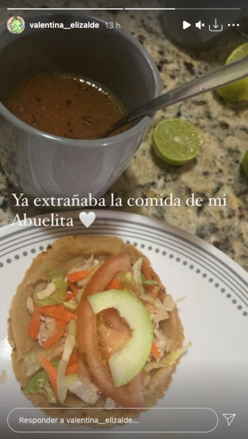 Además, Valentina Elizalde también aprovechó para enseñar la comida que su abuela Camila Valencia preparó para ella, demostrando que tiene un gran cariño y aprecio hacia por la mamá de su difunto padre.