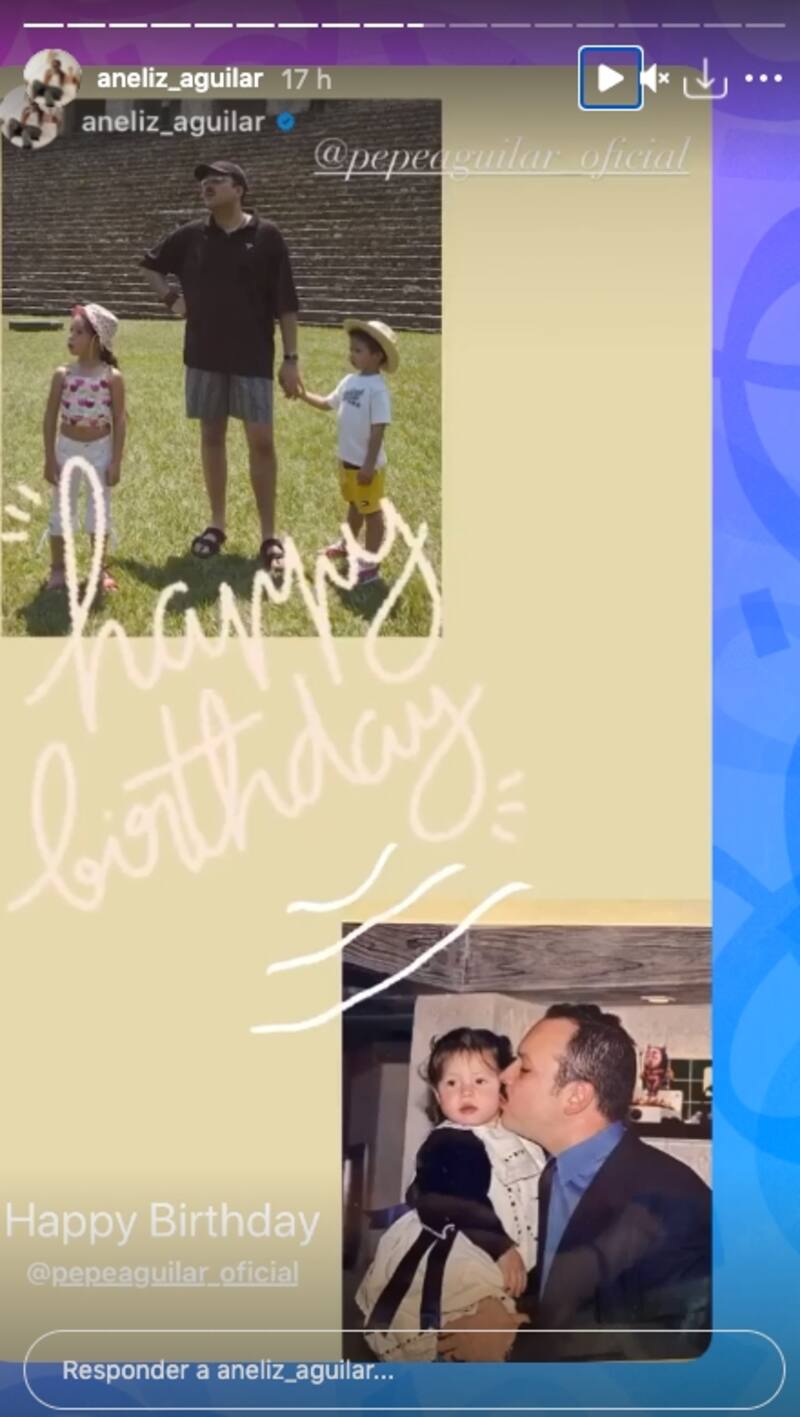A propósito, escribió: "Feliz cumpleaños @pepeaguilar_oficial !! Te amo muchísimo. Gracias por darme un ejemplo tan grande y claro de lo que significa ser hombre. Diario me siento increíblemente orgulloso de ti y de lo qué haces. Ojalá en la vida pueda llegar a ser un 20% de lo que eres. Te amo ??".