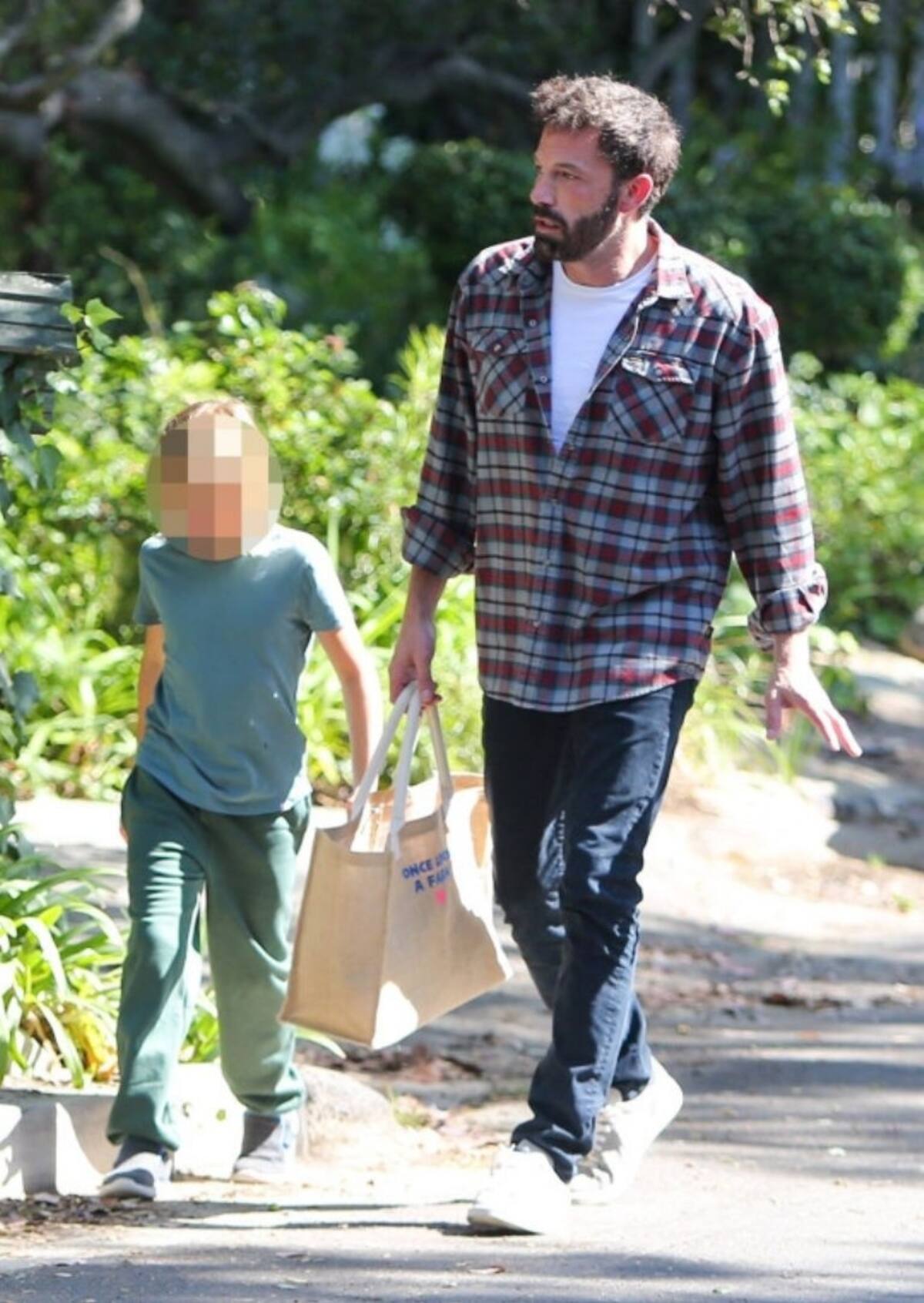 En las imágenes filtradas se puede ver al actor luciendo una gran sonrisa mientras porta un look casual que consta de tenis, jeans y una camisa de franela roja de cuadros. Affleck fue captado mientras realizaba compras con su hijo más pequeño, Samuel.
