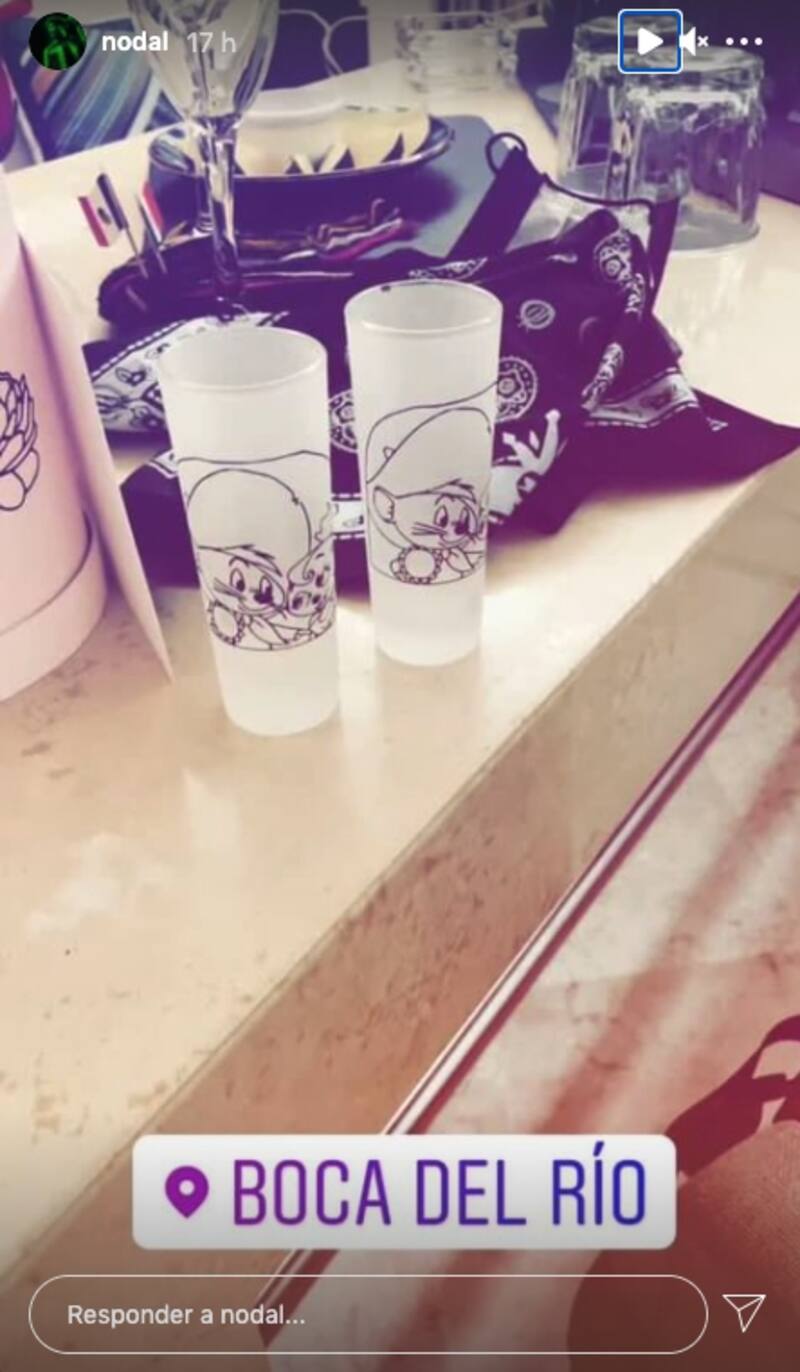 Se trata de una pequeña ánfora de tequila muy especial, en la cual fue grabada la foto del compromiso de Christian Nodal y Belinda, junto con los nombres de las integrantes del club de fans. La compartió a través de un video acompañado con la canción "Mi chula".